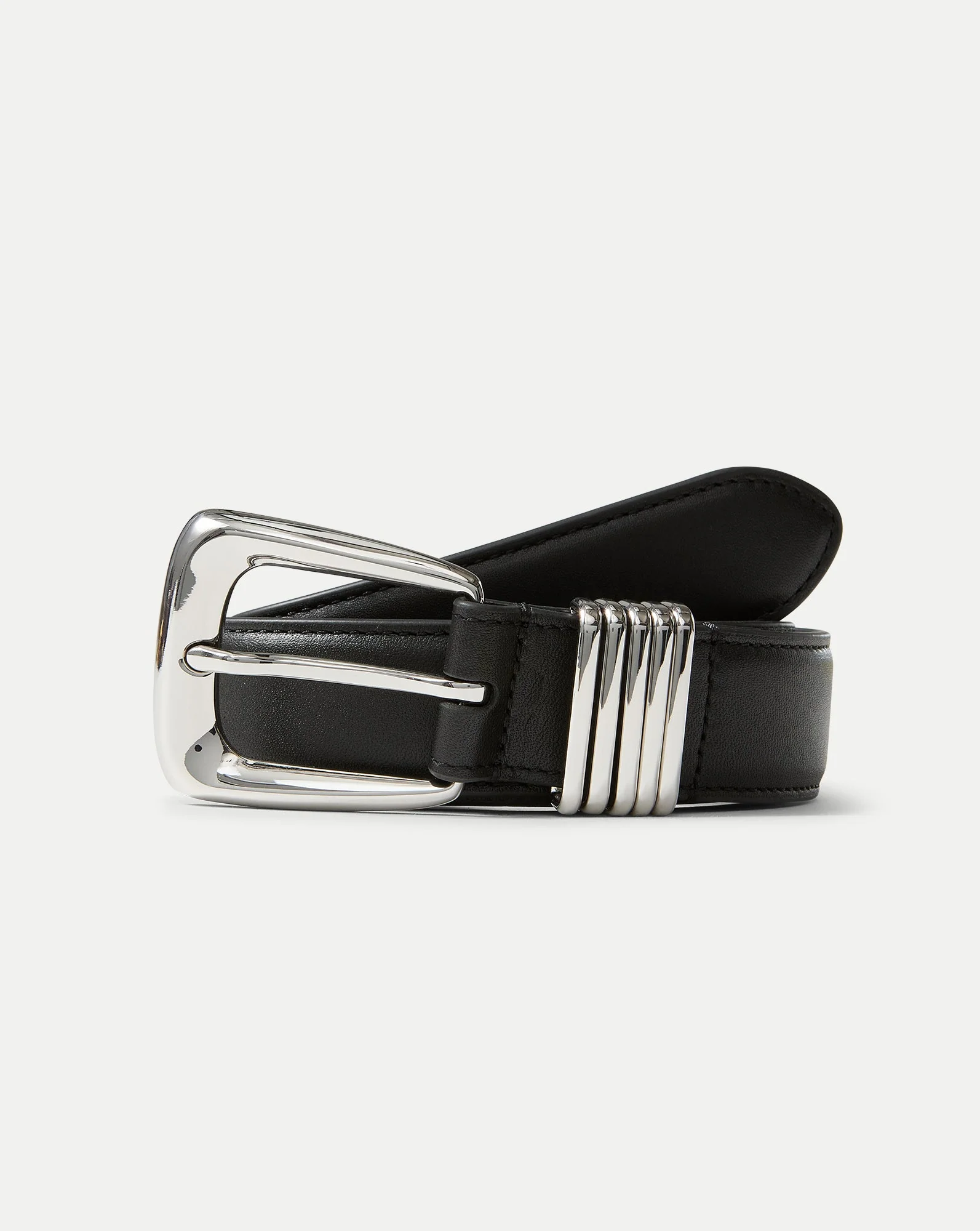 The classic black leather belt, perfected. Crafted from smooth, fine-grained leather and lined in soft nubuck, the Arch belt features a thick silver prong buckle, finished with a wide, ridged keeper for subtle impact. Timeless and versatile, it’s the belt you’ll reach for again and again—it pairs effortlessly with anything and everything.