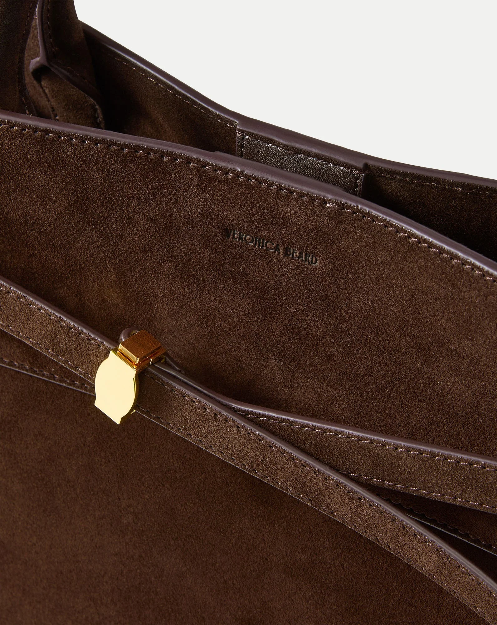 A roomier take on the original, the aptly named Dash is your go-anywhere bagâdesigned to keep up from work to weekends. Crafted from butter-soft Italian suede in dark brown, it features an adjustable belted strap, a structured top handle, and a removable shoulder strap for maximum versatility. An interior zip pocket and magnetic closure add everyday ease.