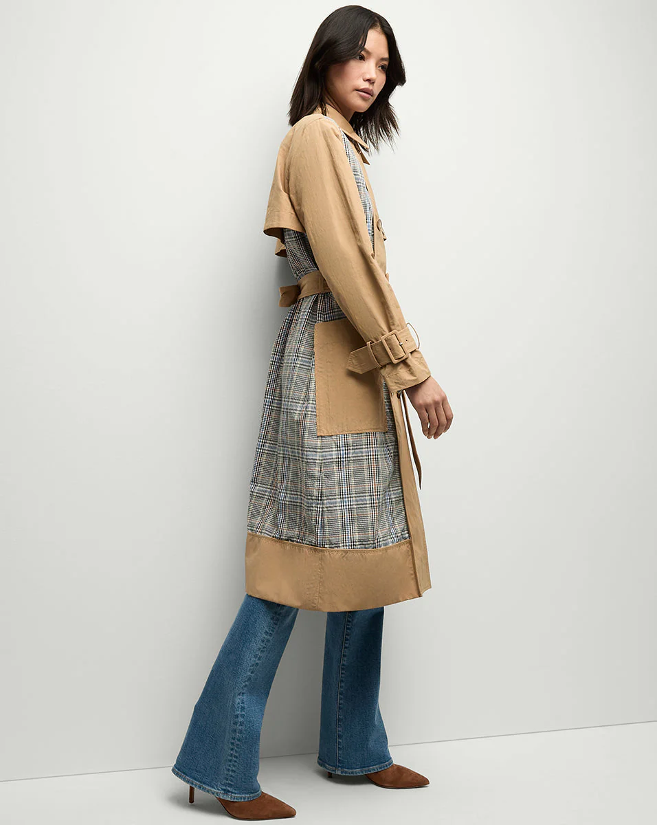 Exceptionally tailored from water-resistant cotton, the Liam is a cool take on the classic trench coat. The core design details are there—buckled cuffs, a storm flap and a buttoned storm vent in the back—but we've added panels of plaid for a chic patchwork effect. Cut for a relaxed fit, it's the perfect layer to throw on over sweaters and jeans, day dresses and more.