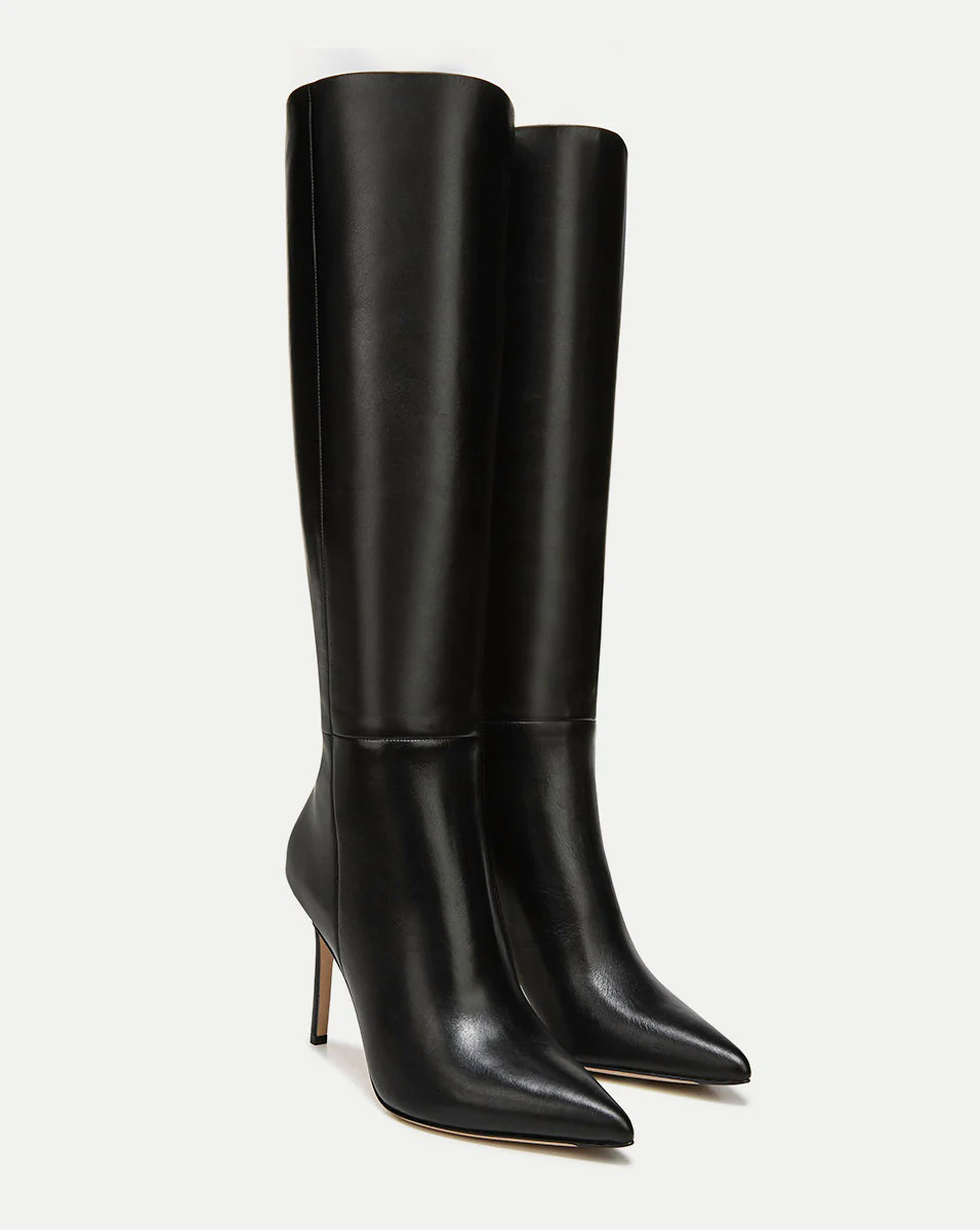 The knee-high Lisa boot features a stiletto heel and pointy-toe finish. The pull-on style is a glamorous addition to your closetâperfect for date night and beyond. Style them with your favorite dresses and skirts; you'll get it right, every time.