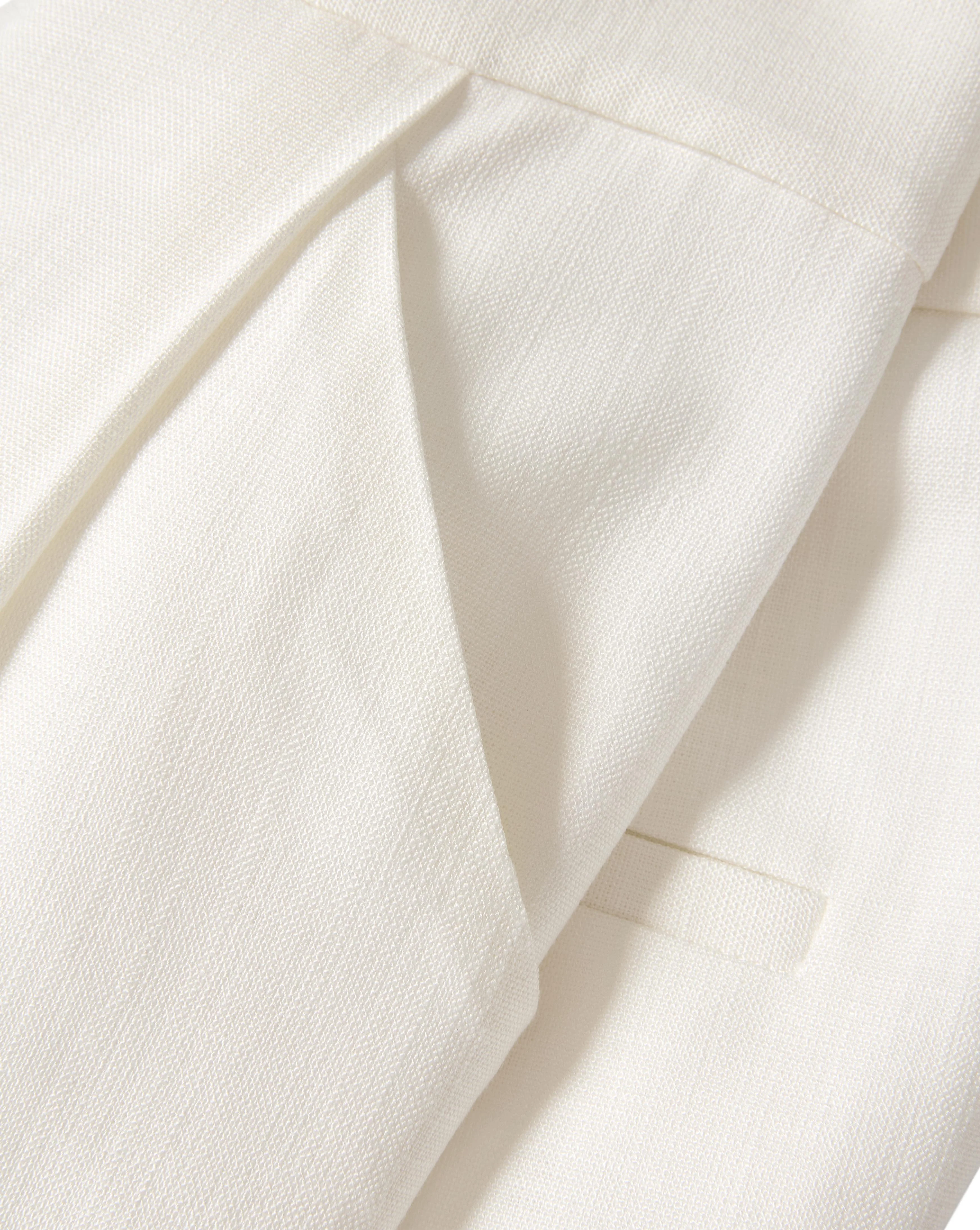 A relaxed, roomy pant that still feels polished. Crafted from a premium stretch-tailoring blend in off-white, the high-waisted Marbeau is defined by a wide-leg silhouette with front pleats and fluid drape. It features an elasticated back band to ensure a comfortable fit, while diagonal side slip pockets and back welt pockets complete the look. Dress it down with a simple tee or sweater—or pair with a matching Battista dickey jacket for an effortless suit.