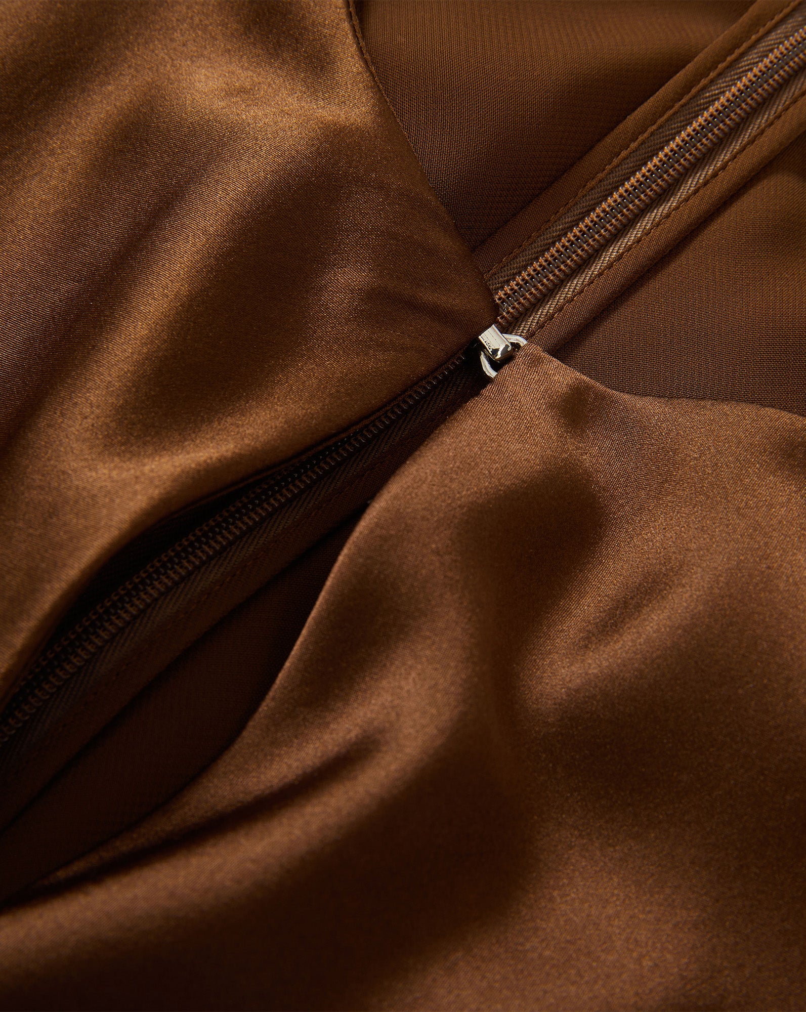 Crafted from a sleek stretch-silk blend in rich brown, the Nelzy dress features an ankle-grazing maxi silhouette with elegant, fluid drape. An empire waist creates a flattering, elongating effect, while cap sleeves and a front keyhole detail complete the look. A concealed back zipper ensures ease of wear. A new go-to for event dressing, style it with heels and statement earrings.