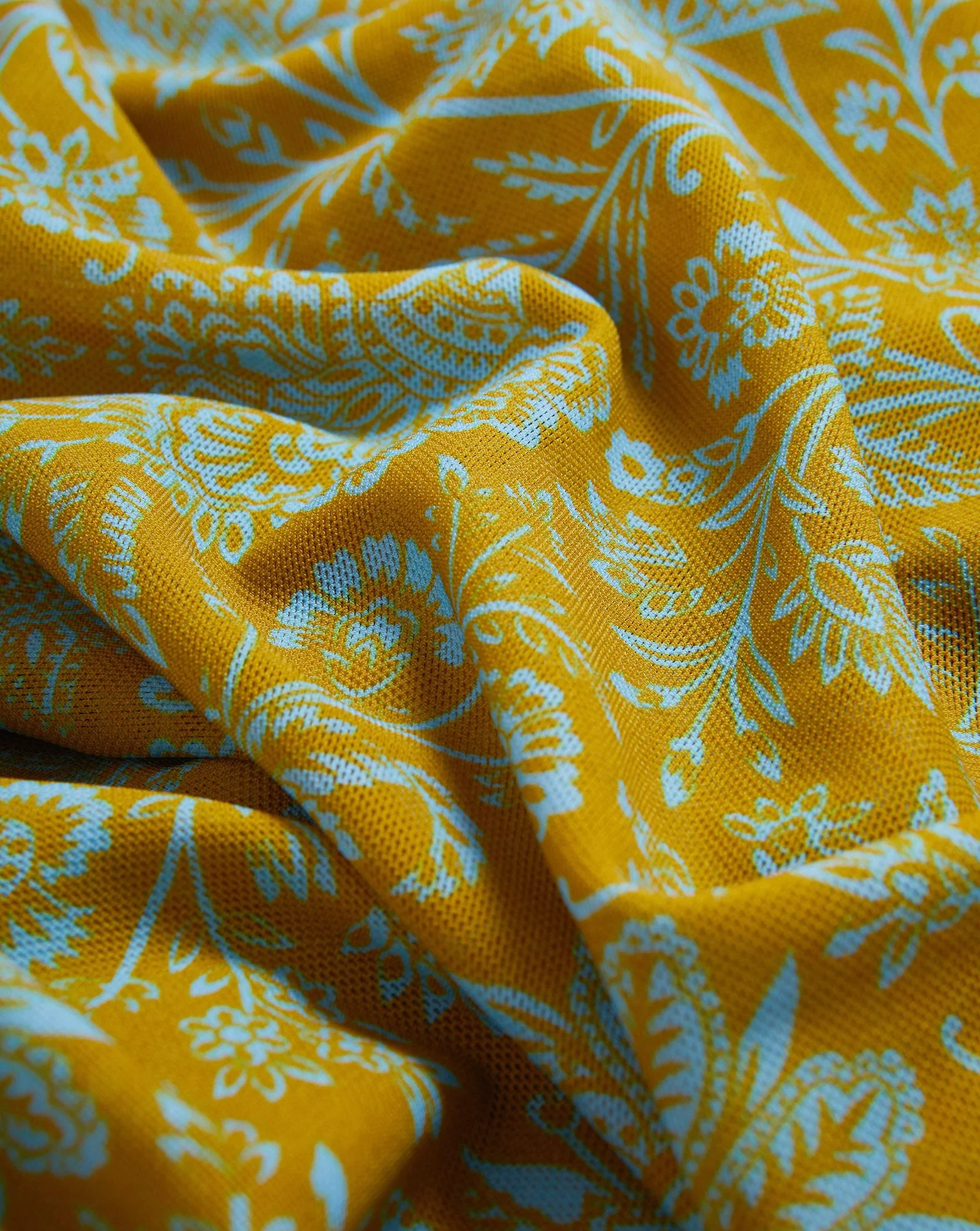 A tank top with a twist. Crafted from sheer nylon mesh, the Otessa tank features a slim-fit silhouette with extra stretch for ease. It features gold-and-blue florals, beautiful drape, and a delicate knot detail on one shoulder. Pair with shorts to elevate the everyday—or wear as a going-out top for a night out.