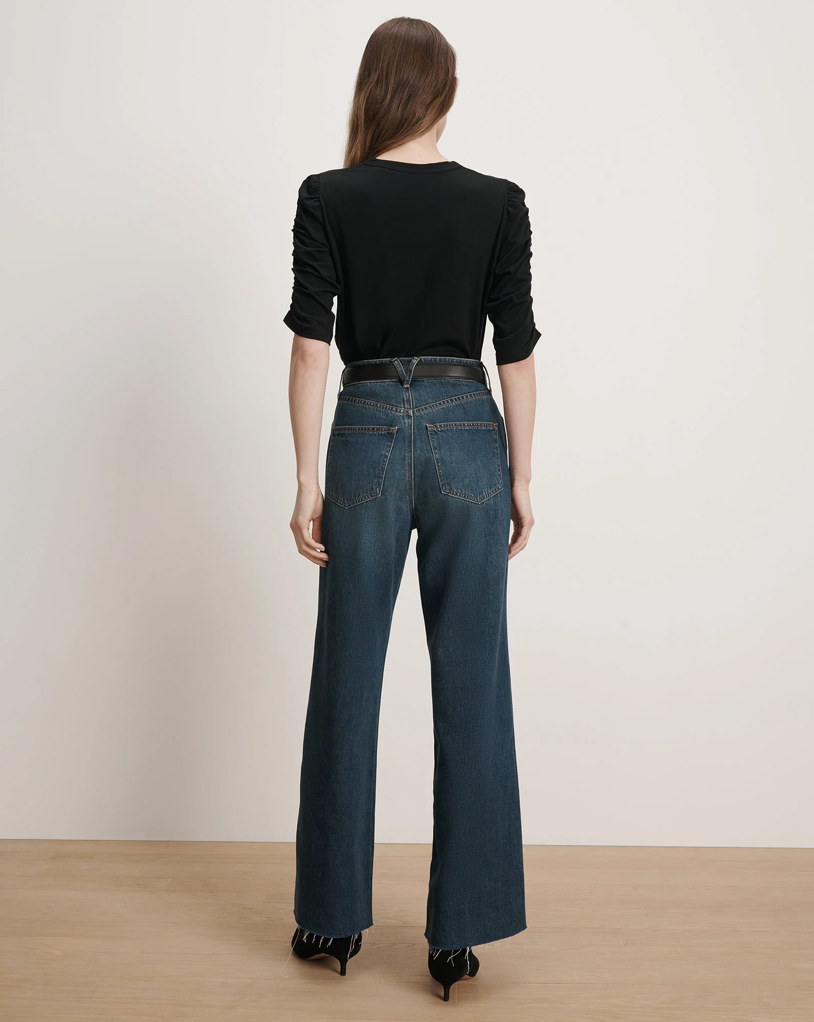 A feminine take on the crewneck T-shirt. Crafted from 100% cotton for a soft, breathable feel, the Waldorf is a true wardrobe essential, elevated with our signature ruching along the elbow-length sleeves. Wear this casual-cool style with high-rise jeans for a chic, polished look.
